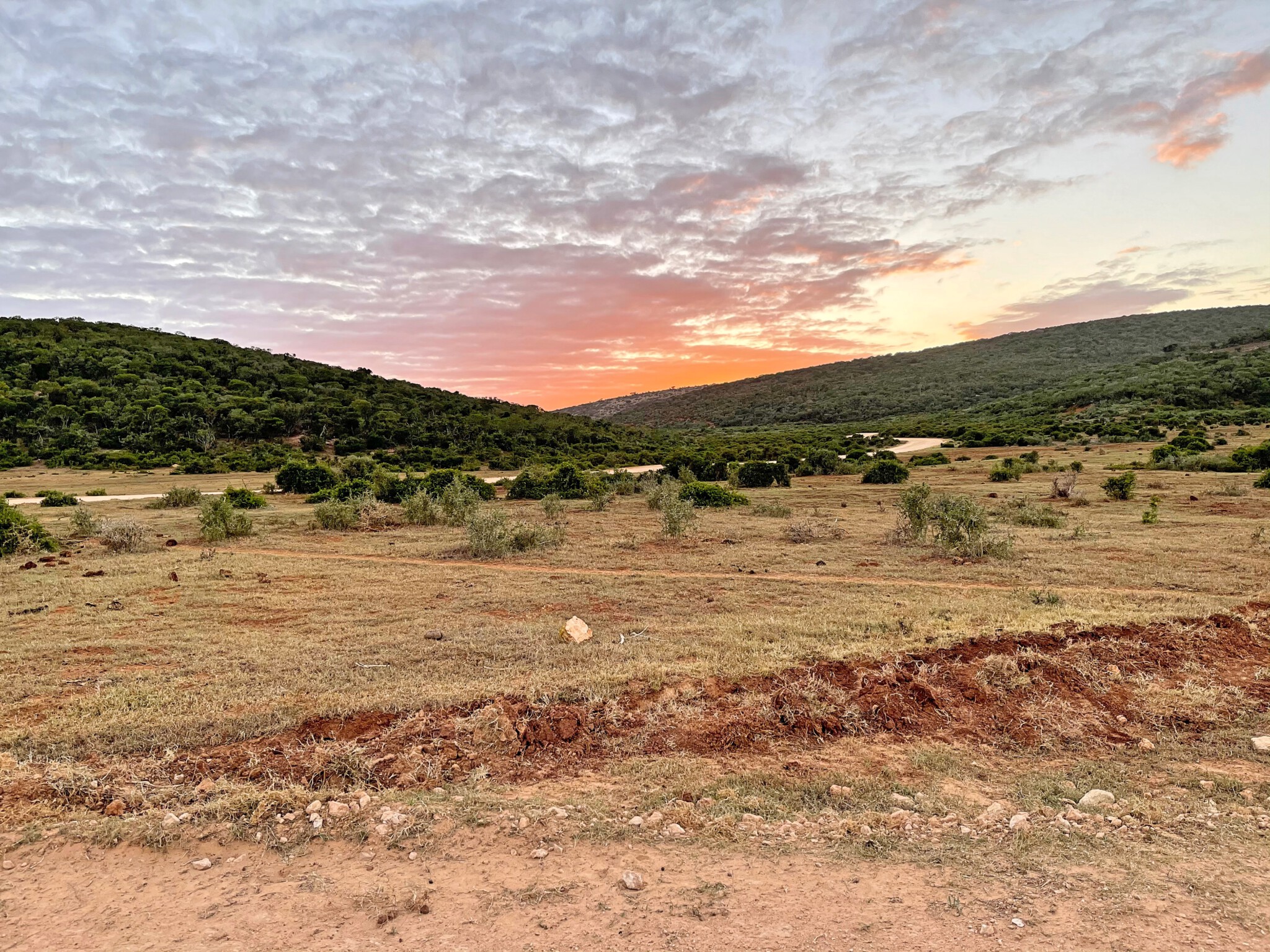Wir haben auch gar keine Zeit, denn bevor das Gate am Abend schließt, wollen wir noch eine Runde drehen und gucken was uns so vor das Auto läuft. Wir laden also nur schnell aus und los geht das Safari-Abenteuer. An diesem Nachmittag entdecken wir Warzenschweine, Red Hartebeests, Zebras und natürlich Elefanten.