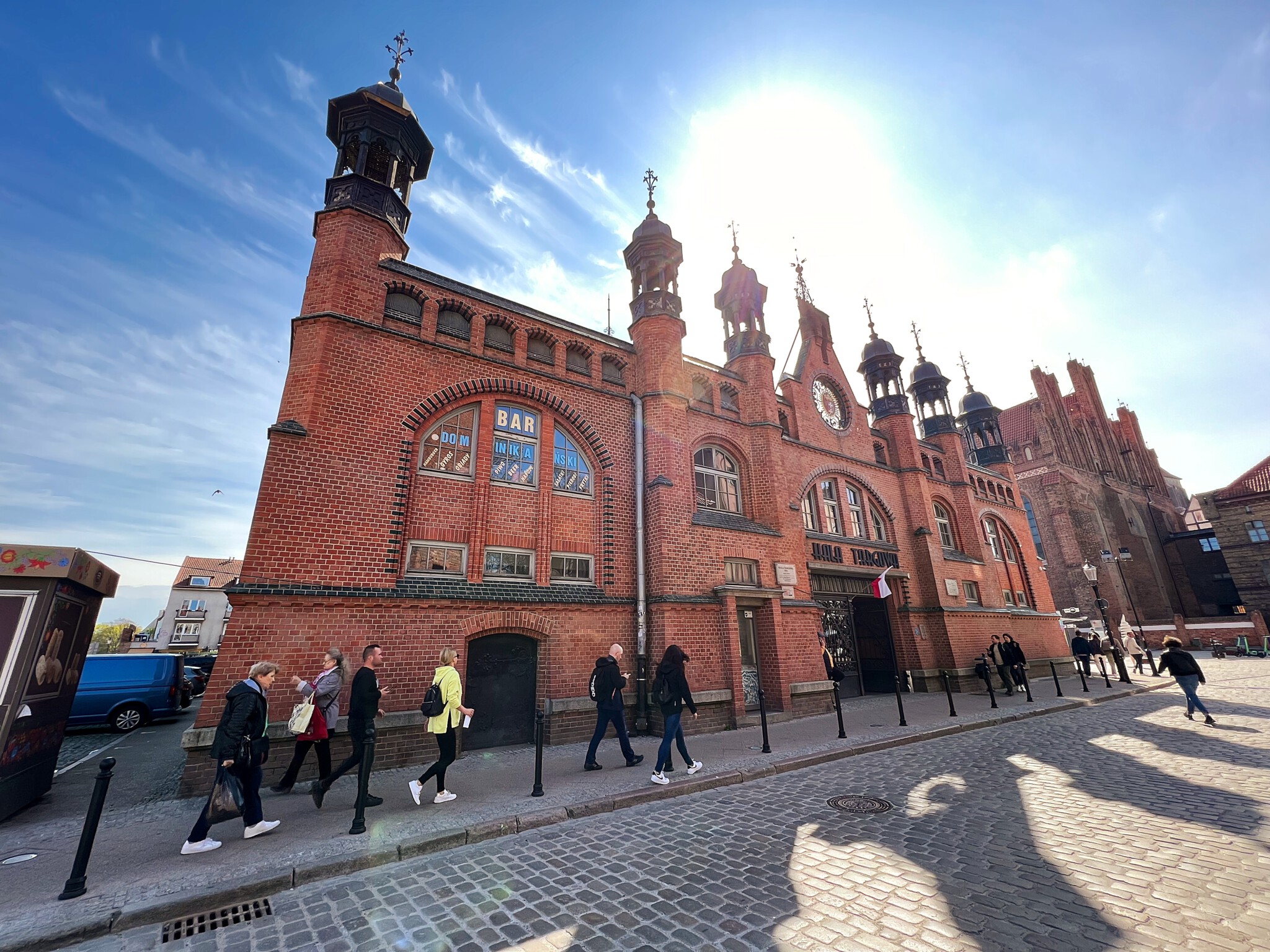 Am Hauptbahnhof in Danzig angekommen, steuern wir die ul. Rajska an. Über sie gelangen wir zum Bernsteinmuseum und ein paar Meter weiter zur Markthalle Hala Targowa.