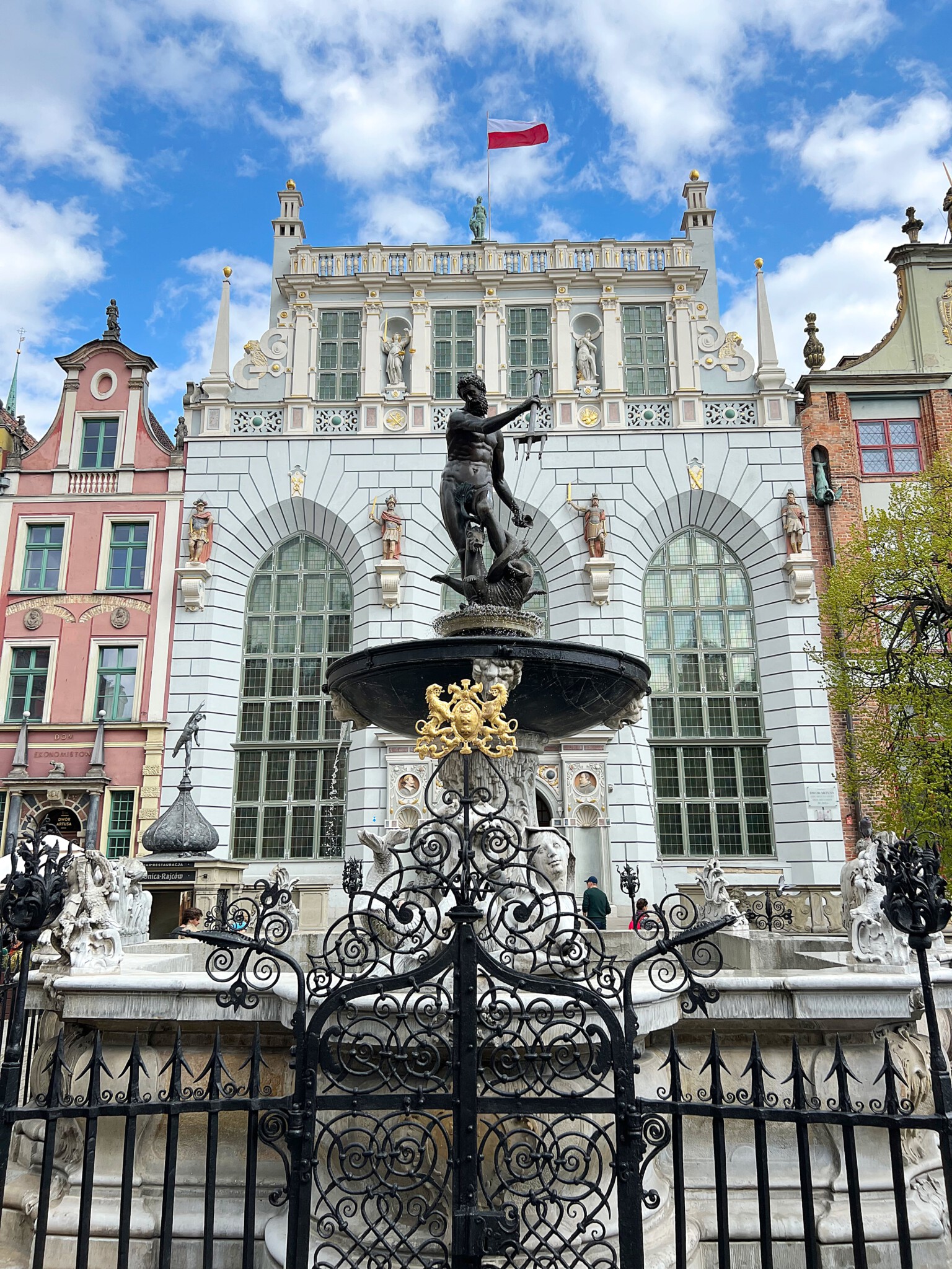 Auf dem Langen Markt ist ein Wahrzeichen der Stadt, der Neptunbrunnen, zu finden.