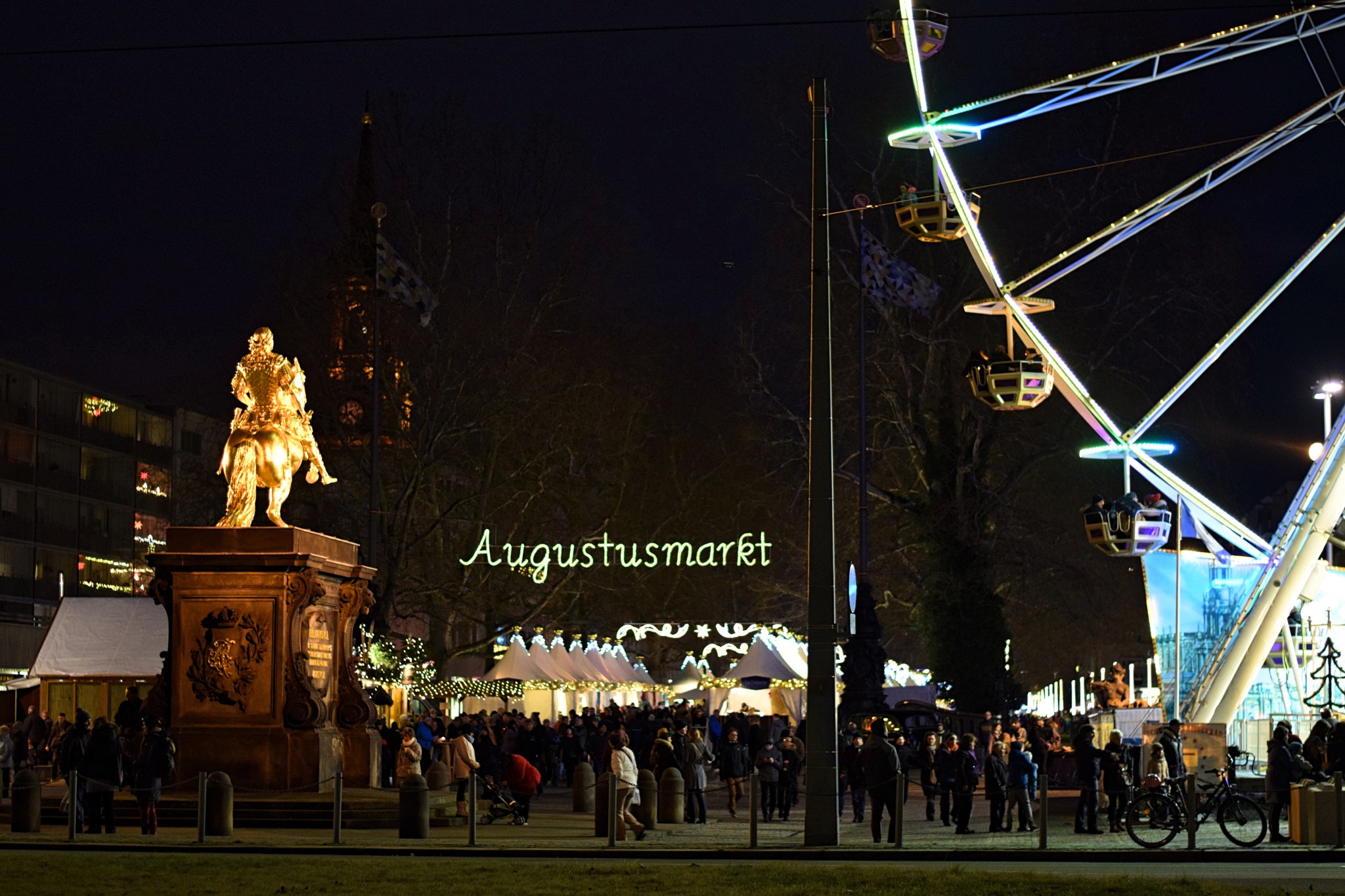 Wir beginnen auf der Neustädter Elbseite. Über die gesamte Hauptstraße zieht sich der Augustusmarkt.