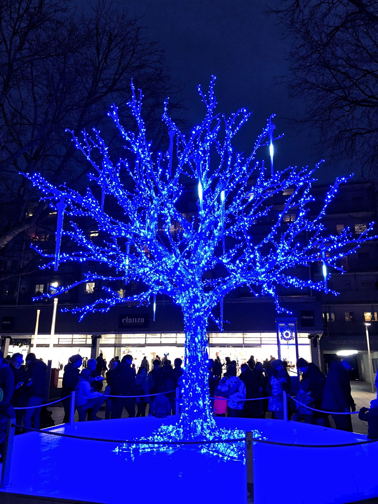 Das Highlight ist der Blaue Baum in der Mitte des Marktes. www.augustusmarkt.de