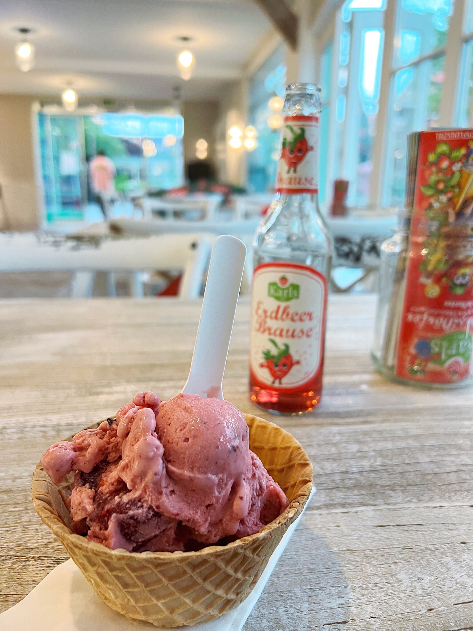 Wer mit Kindern reist, für den ist der Besuch im Karls Erlebnis-Dorf in Koserow mit großem Spielplatz und den Fahrgeschäfte ein Muss. Auch ohne Kinder statten wir Karls hin und wieder einen Besuch ab, um durch die Markthalle zu schlendern und ein leckeres Stück Erdbeerkuchen oder ein Erdbeer-Stracciatella-Eis zu essen.