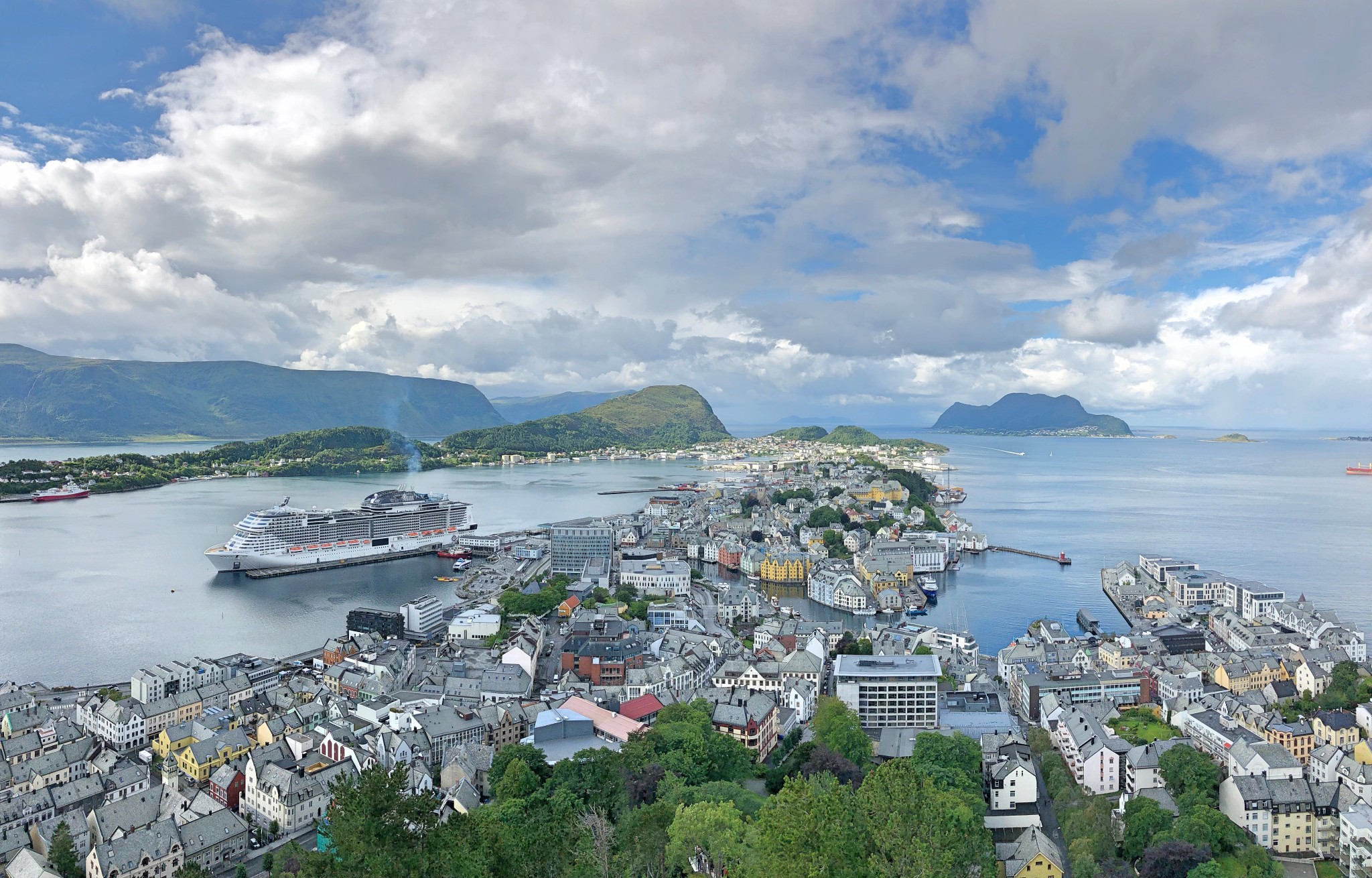 Am darauffolgenden Tag legen wir in der Hafenstadt Alesund an. Unser erster Weg führt uns in den Stadtpark Alesund. Von hieraus führen 418 Stufen auf dem Stadtberg Aksla, der eine fantastische Aussicht auf Alesund und die Inseln und Fjorde gibt.