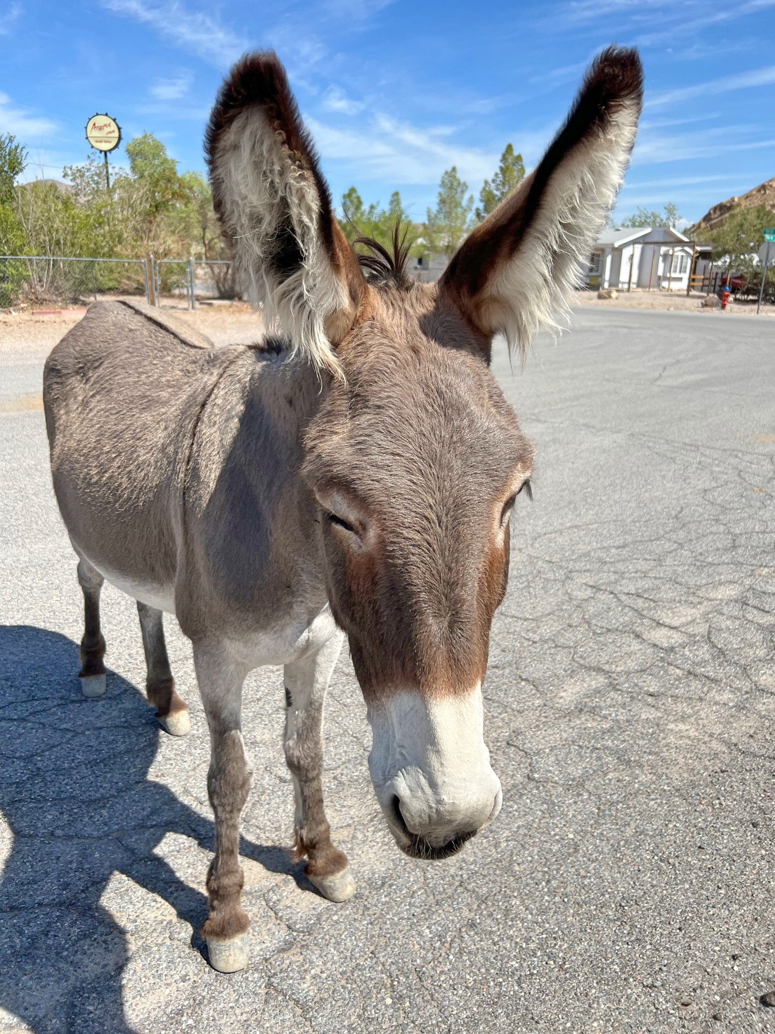 In Beatty übernachten wir im Death Valley Inn. Abends sitzen wir gemütlich im Happy Burro, am Morgen gibt es Frühstück bei Mel’s Diner und uns laufen noch die wilden Esel vor die Kamera.