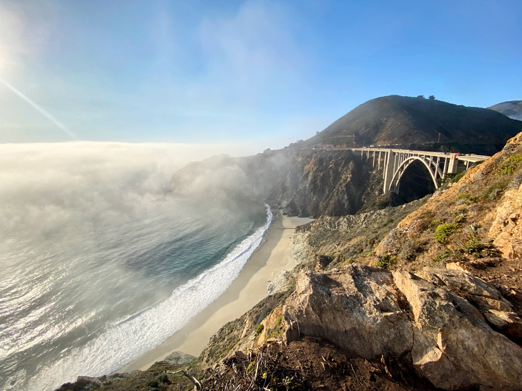In Monterey wird am Wasser bei Bubba Gumps gegessen, dabei können wir Delfine beobachten. Im Anschluss schlendern wir noch ein bisschen durch das Küstenstädtchen bevor wir auf den Highway 1 fahren.