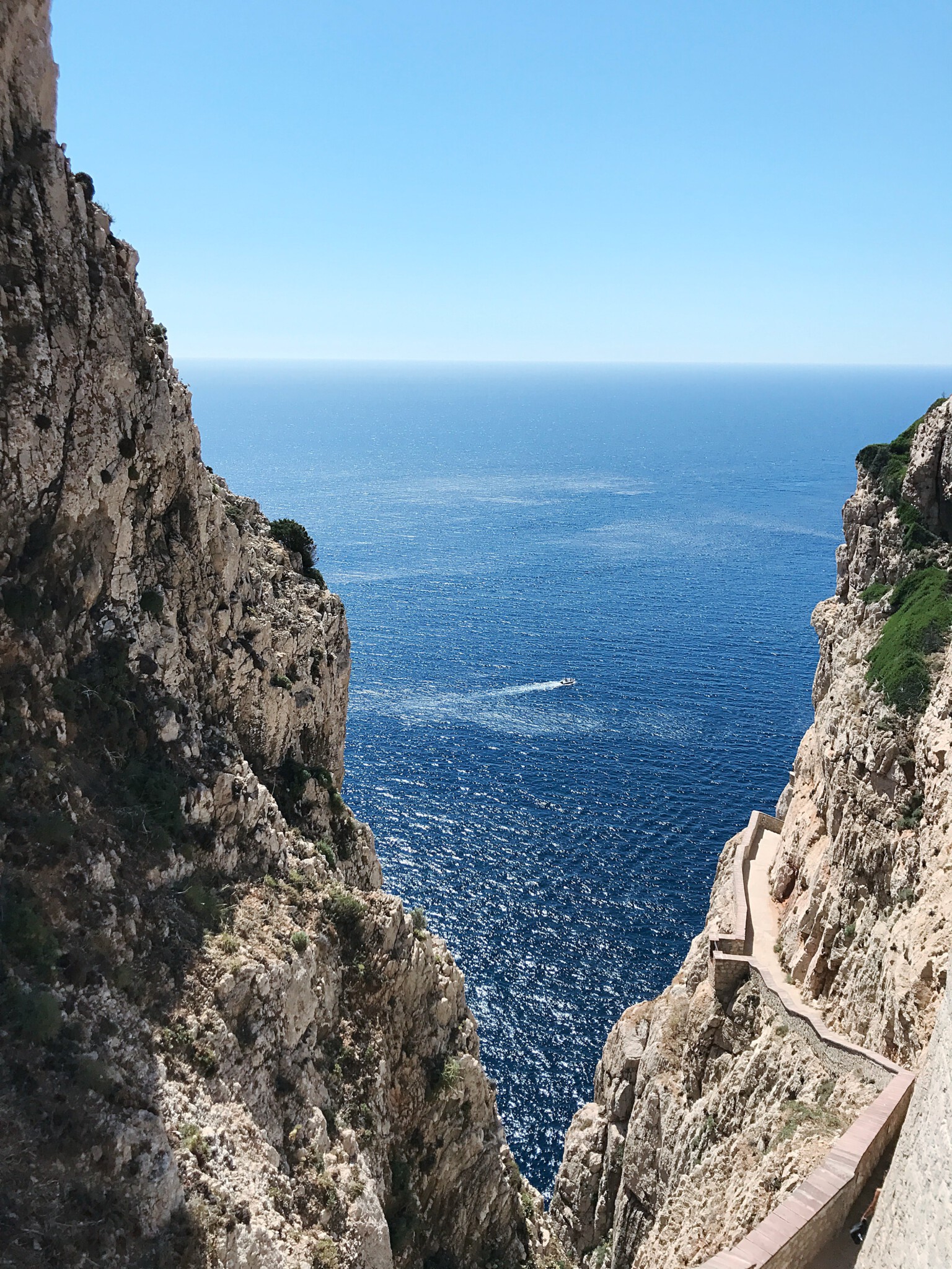 Von der Landzunge Capo Caccia bietet sich einem eine spektakuläre Aussicht. Am äußersten Zipfel ist die Grotta di Nettuno, eine Tropfsteinhöhle zu finden. 654 Stufen führen an der Klippe hinab zur Höhle. Uns ist es heute zu heiß – wir passen.