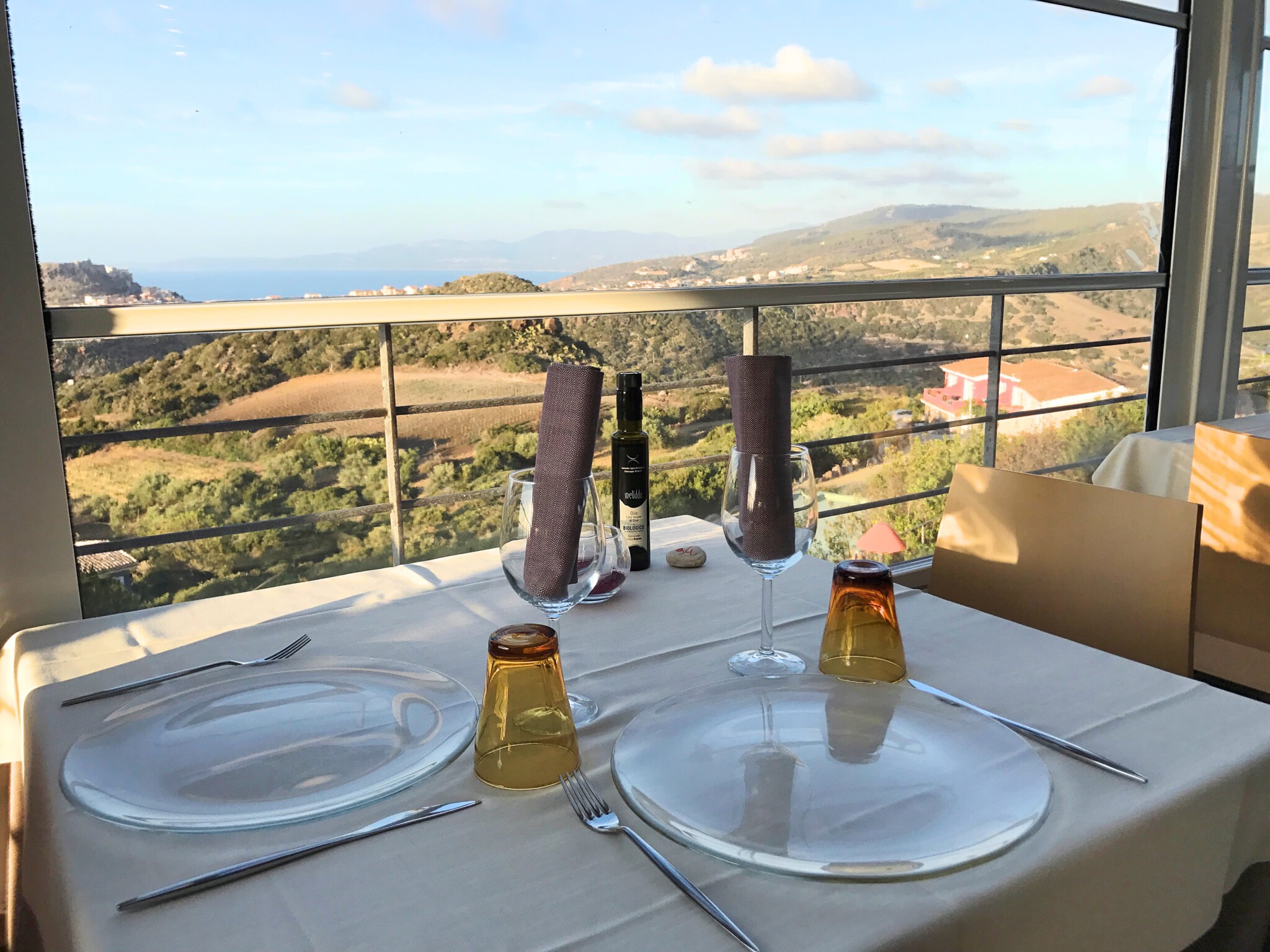 Für ein typisch sardisches Abendessen mit Traumsicht fahren wir etwas außerhalb von Castelsardo in das Ristorante L’incantu. Den Tisch haben wir vorab reserviert.