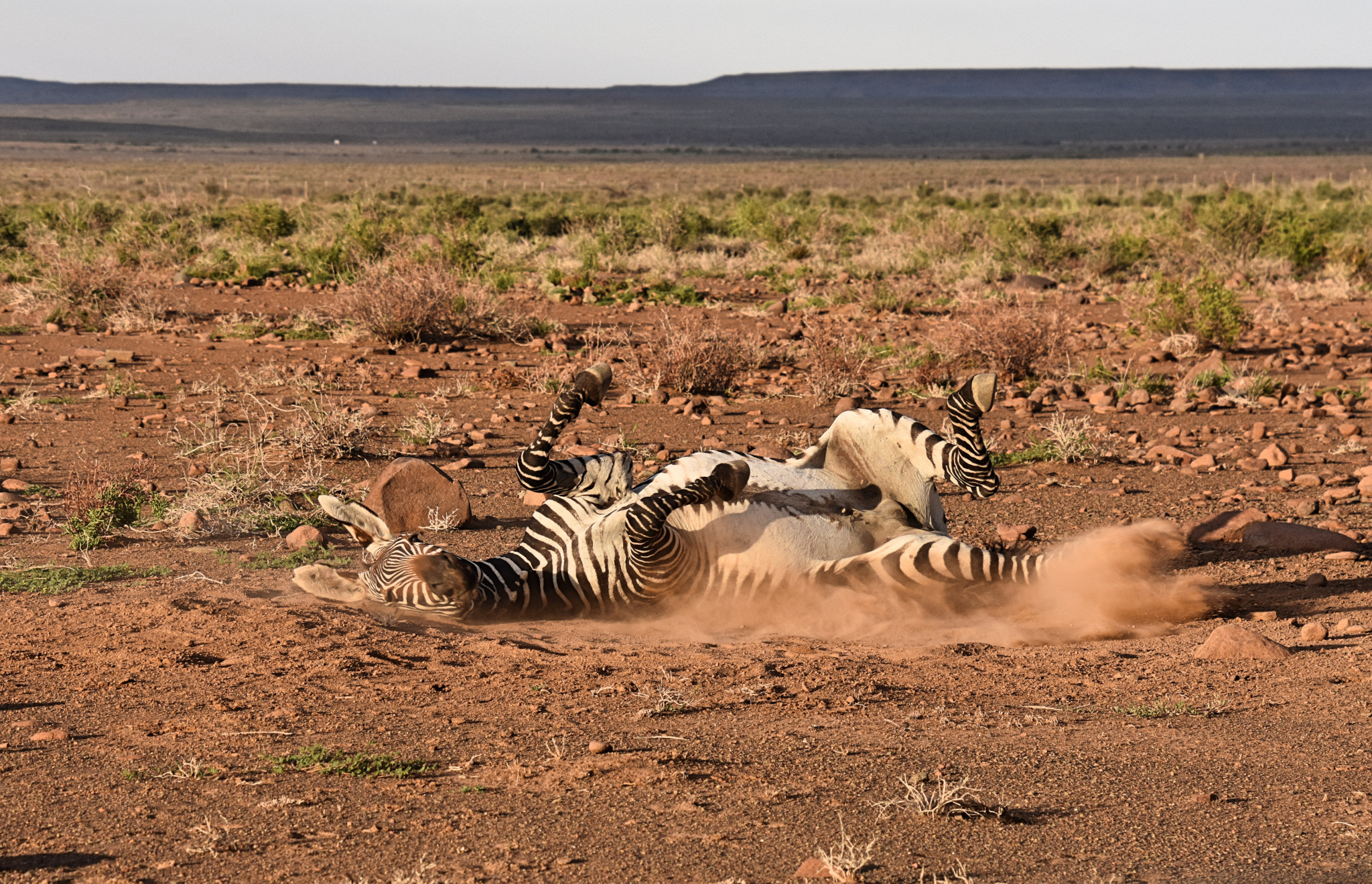 Wir haben jede Menge Spaß mit den teilweise sehr abenteuerlichen Straßen. Es gibt 8 4×4-Routen, von denen man für einige vorab Genehmigungen benötigt. Für viele gilt die Vorgabe „4×4 only“. Drei Routen können von „normalen“ Pkws befahren werden: Der 10 km lange Lammertjiesleegte, der am Eingang des Parks liegt, ist sehr gut befahrbar. Hier entdecken wir auch schnell die ersten Tiere. In der eingezäunten Picknick Area besteht die Möglichkeit zu braaien (das südafrikanische Grillen) und es gibt einen Pool für Tagesbesucher. Der teilweise unbefestigte Potlekkertjie Loop ist an einigen Stellen etwas heikel, aber machbar. Den unbefestigten Afsaal Loop ohne 4×4 zu befahren, halte ich für gewagt.