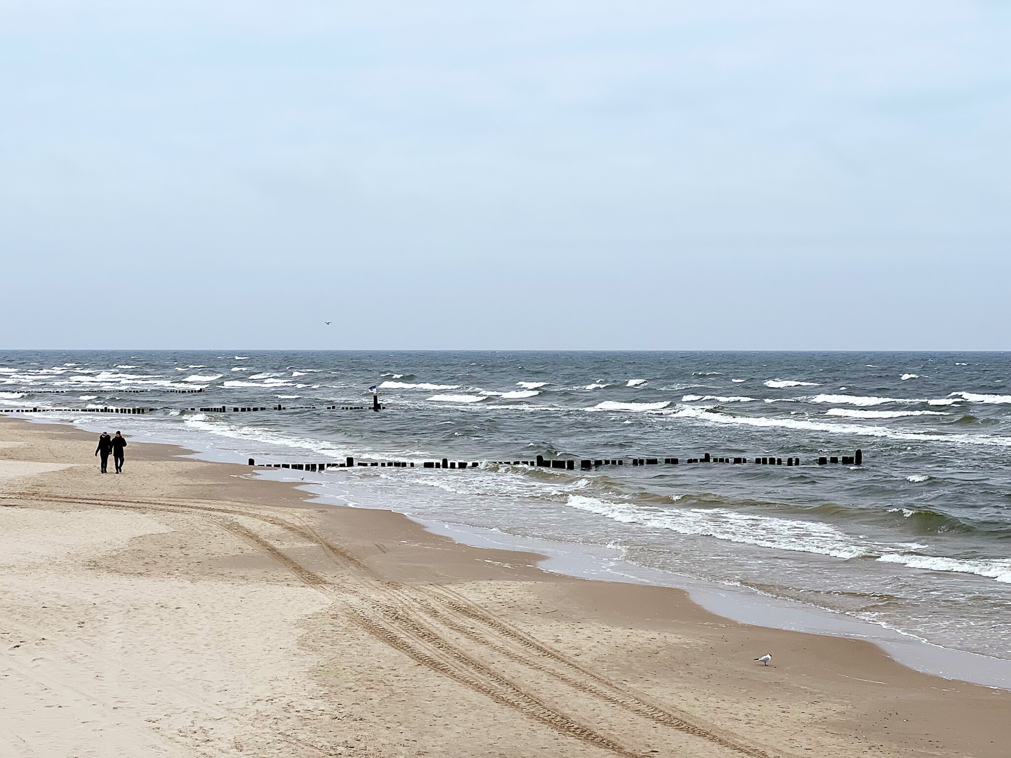 Am ersten Tag erkunden wir Swinemünde. Im April ist es noch ordentlich kalt und ungemütlich. Das hält uns aber nicht von einem Strandspaziergang zum Leuchtturm Mühlenbake ab.